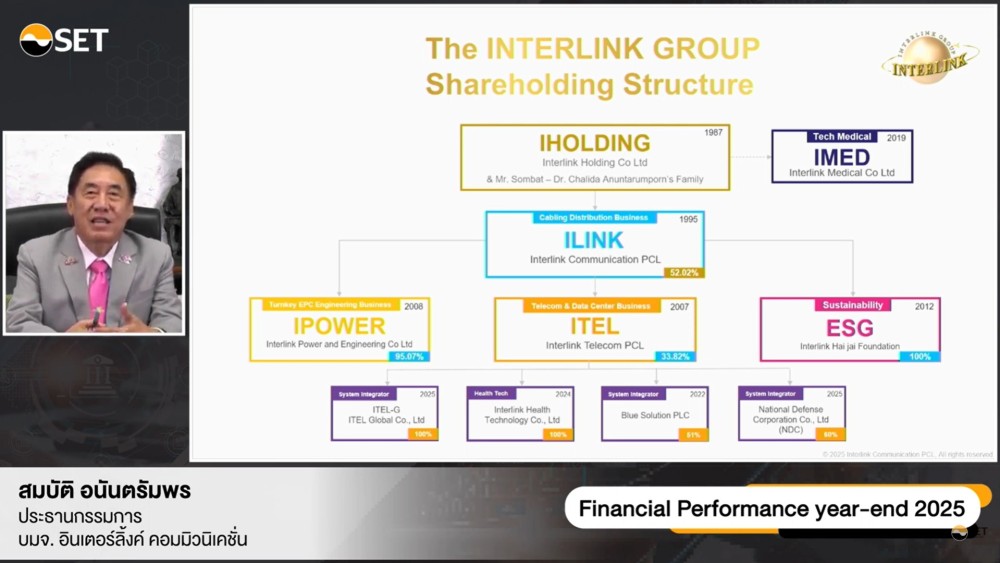 นายสมบัติ อนันตรัมพร ประธานกรรมการ กลุ่มบริษัท อินเตอร์ลิ้งค์ฯ เปิดเผยในงาน Opportunity Day ว่า “ผลการดำเนินงานปี 2568 สะท้อนถึงความแข็งแกร่งของบริษัทฯ ที่ดำเนินธุรกิจมายาวนานกว่า 39 ปี ภายใต้อุดมการณ์ “นำเทคโนโลยีมาพัฒนาประเทศไทย” โดยบริษัทฯ สามารถปรับตัวให้สอดคล้องกับทิศทางเศรษฐกิจโลก และเทคโนโลยีที่เปลี่ยนแปลงอย่างรวดเร็ว พร้อมเน้นการบริหารธุรกิจอย่างสมดุล ให้ความสำคัญกับการเพิ่มประสิทธิภาพการทำกำไรสุทธิ และเพิ่มประสิทธิภาพในการทำงานเป็นหลักในปี 2569 เพื่อสร้างการเติบโตอย่างสมดุล และยั่งยืน”
