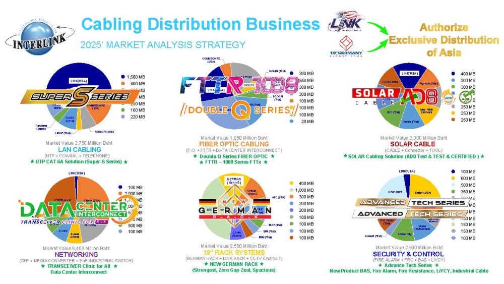 ยังคงตอกย้ำความเป็นผู้นำตลาดสายสัญญาณภายใต้แบรนด์ LINK AMERICAN พร้อมขยายช่องทางจัดจำหน่าย และโซลูชันระบบโครงข่ายที่ครบวงจรงานระบบ รวมถึงตู้แร็คภายใต้แบรนด์ GERMAN RACK รองรับการเติบโตของตลาด Data Center, AI และเทคโนโลยีดิจิทัล ซึ่งเป็นปัจจัยสนับสนุนสำคัญของธุรกิจในระยะยาว