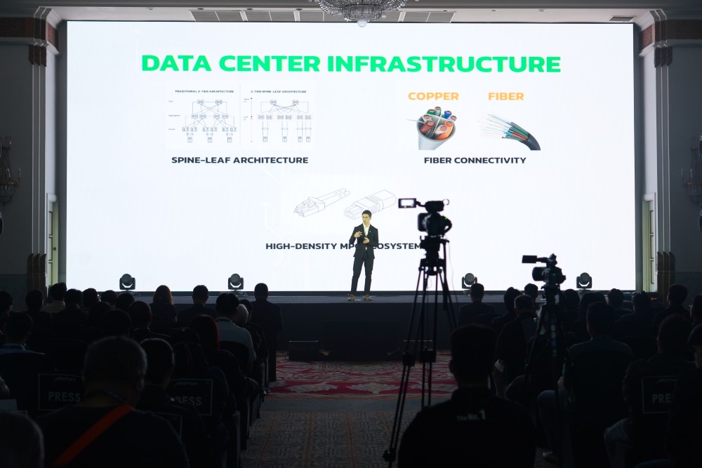 ภายในงานนี้ ได้รับเกียรติจากผู้เชี่ยวชาญจาก LINK AMERICAN และ 19” Germany Export Rack มาร่วมให้ข้อมูลเชิงลึกในหลากหลายสาขาโซลูชัน โดยมี นายธนากร ชนะวงศ์วิสุทธิ์ Network Engineering Manager ได้ร่วมถ่ายทอดองค์ความรู้อย่างมืออาชีพด้าน Data Center Interconnect Solution อธิบายถึงโครงสร้างระบบ และเทคโนโลยีสำคัญที่ใช้ในการเชื่อมต่อระหว่างดาต้าเซ็นเตอร์ยุคใหม่ ซึ่งต้องรองรับความเสถียร ความเร็วสูง และความปลอดภัยในระดับองค์กร ครอบคลุมตั้งแต่ระดับอุปกรณ์ไปจนถึงการบริหารจัดการเครือข่าย เพื่อเสริมสร้างความเข้าใจแบบองค์รวม พร้อมทั้งเน้นย้ำถึงสาระสำคัญของการลงทุนด้านเทคโนโลยีในปัจจุบันที่ไม่อาจพิจารณาเพียงอุปกรณ์ปลายทาง หรือ ซอฟต์แวร์ แต่จำเป็นต้องให้ความสำคัญกับโครงสร้างพื้นฐานที่อยู่เบื้องหลัง โดยเฉพาะระบบสายสัญญาณ และ DATA CENTER ซึ่งกำลังเผชิญกับความท้าทายจากปริมาณข้อมูลที่เพิ่มขึ้นอย่างรวดเร็ว ความต้องการความเร็วระดับ 400G – 800G รวมถึงการออกแบบระบบที่ต้องรองรับการขยายตัวในระยะยาวอย่างมีประสิทธิภาพ