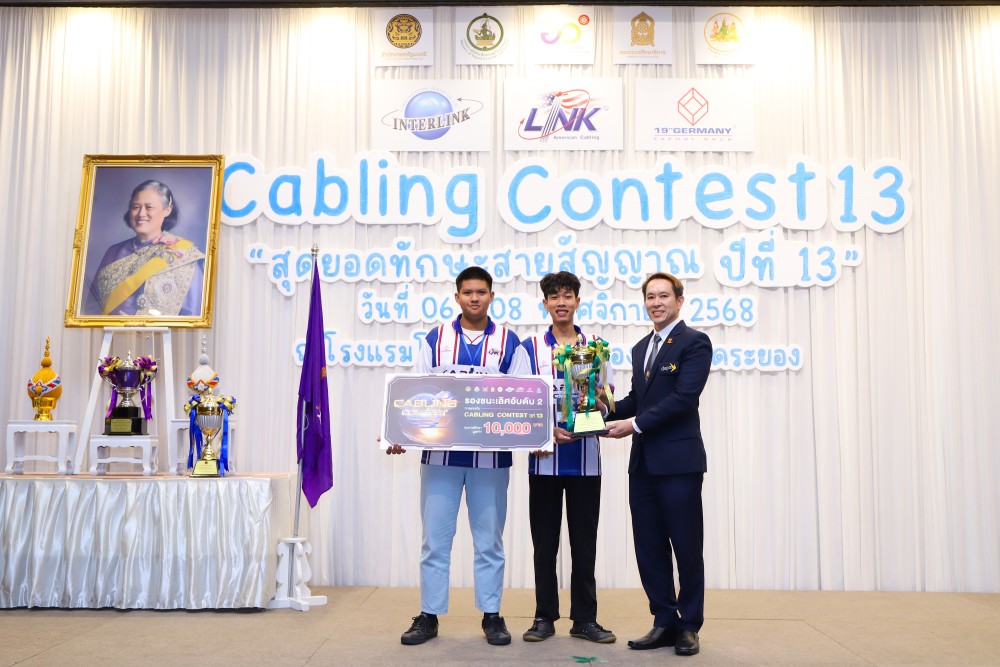 นายสมบัติ อนันตรัมพร ประธานกรรมการ บริษัท อินเตอร์ลิ้งค์ฯ กล่าวเสริมตอนท้ายอีกว่า “การแข่งขัน Cabling Contest นับเป็นโครงการที่อินเตอร์ลิ้งค์ฯ ภาคภูมิใจ และให้ความสำคัญอย่างยิ่ง เพราะเป็นเวทีที่เปิดโอกาสให้เยาวชนไทยได้แสดงศักยภาพด้านเทคโนโลยีอย่างแท้จริง ทั้งความคิดสร้างสรรค์ ความละเอียดรอบคอบ และความมุ่งมั่นที่เราได้เห็นจากทุกทีมในปีนี้ สะท้อนให้เห็นถึงคุณภาพของคนรุ่นใหม่ที่พร้อมจะเป็นพลังขับเคลื่อนประเทศไทยสู่อนาคตดิจิทัลอย่างยั่งยืน และอินเตอร์ลิ้งค์ฯ เชื่อมั่นว่า เทคโนโลยีสายสัญญาณ ยังคงเป็นรากฐานสำคัญของการพัฒนาโครงสร้างพื้นฐานด้านดิจิทัล และเราจะยังคงเดินหน้าสานต่อความฝัน สนับสนุนเยาวชนไทยอย่างต่อเนื่อง เพื่อสร้างบุคลากรมืออาชีพ สร้างรากฐานเทคโนโลยีที่แข็งแกร่ง เพื่ออนาคตของประเทศอย่างยั่งยืน ที่จะนำพาประเทศไทยให้ก้าวไกลสู่การเป็นศูนย์กลางของเทคโนโลยีที่มีคุณภาพได้อย่างเต็มภาคภูมิ”