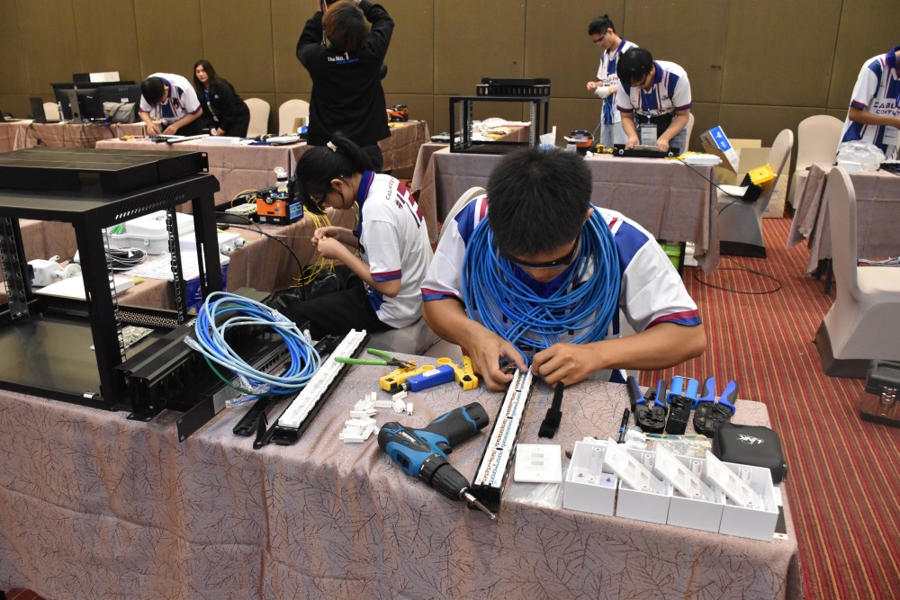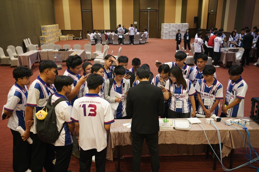 โดยในปีนี้ อินเตอร์ลิ้งค์ฯ ได้ปรับรูปแบบการแข่งขันให้ท้าทายมากยิ่งขึ้น ได้ปรับเปลี่ยนรูปแบบการแข่งขันเป็น “ประเภททีม ทีมละ 2 คน” เพื่อส่งเสริมการทำงานร่วมกัน และการคิดแก้ปัญหาอย่างมีระบบ ซึ่งเป็นทักษะสำคัญในสายอาชีพด้านเทคโนโลยีเครือข่าย ผู้เข้าแข่งขันในแต่ละทีม จะต้องผ่านบททดสอบสุดเข้มข้น ตั้งแต่การออกแบบระบบสายสัญญาณ การติดตั้ง การทดสอบคุณภาพ ไปจนถึงการตรวจสอบประสิทธิภาพของระบบเครือข่ายให้เป็นไปตามมาตรฐานสากล ภายใต้เวลาจำกัด ซึ่งได้สะท้อนให้เห็นถึง “พลังแห่งความมุ่งมั่น” และ “ศักยภาพทางเทคนิค” ของเยาวชนไทยที่ไม่แพ้ชาติใดในโลก