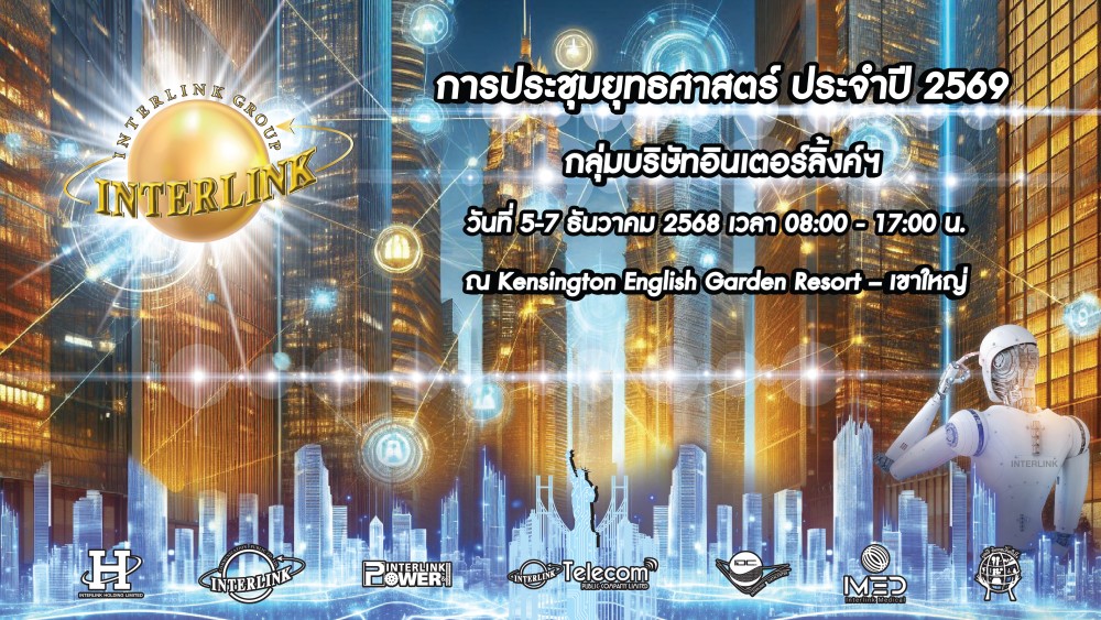 เตรียมก้าวสู่ปี 2569 วางแผนกลยุทธ์ด้วยความแข็งแกร่ง กลุ่มบริษัท อินเตอร์ลิ้งค์ฯ จัดประชุมแผนยุทธศาสตร์ประจำปี 2569 ตอกย้ำความมุ่งมั่นอย่างมั่นคง ในการเป็นผู้นำด้านโครงสร้างพื้นฐานที่ครบวงจรโซลูชัน จากสินค้า และอุปกรณ์ LINK AMERICAN CABLING & GERMAN RACK มุ่งมั่นปั้นทุกธุรกิจ ตามหลักกลยุทธ์ที่แน่วแน่กว่า 38 ปี “Quality Growth” หรือ การเติบโต อย่างต่อเนื่อง และยั่งยืน แบบมีคุณภาพ เสริมทัพรากฐานความแข็งแกร่ง สู่การทำรายได้ที่เพิ่มพูนทั้ง 3 กลุ่มธุรกิจ ในปี 2569 ระหว่างวันที่ 5 – 7 ธันวาคม 2568 ณ เคนซิงตัน อิงลิซ การ์เด้น รีสอร์ท เขาใหญ่ (Kensington Khao Yai) โดยมี ผู้บริหารระดับสูงจากทุกสาขาทั่วประเทศ เข้าร่วมกำหนดทิศทาง และร่วมวางรากฐานสำคัญในการพัฒนาองค์กรสู่อนาคต