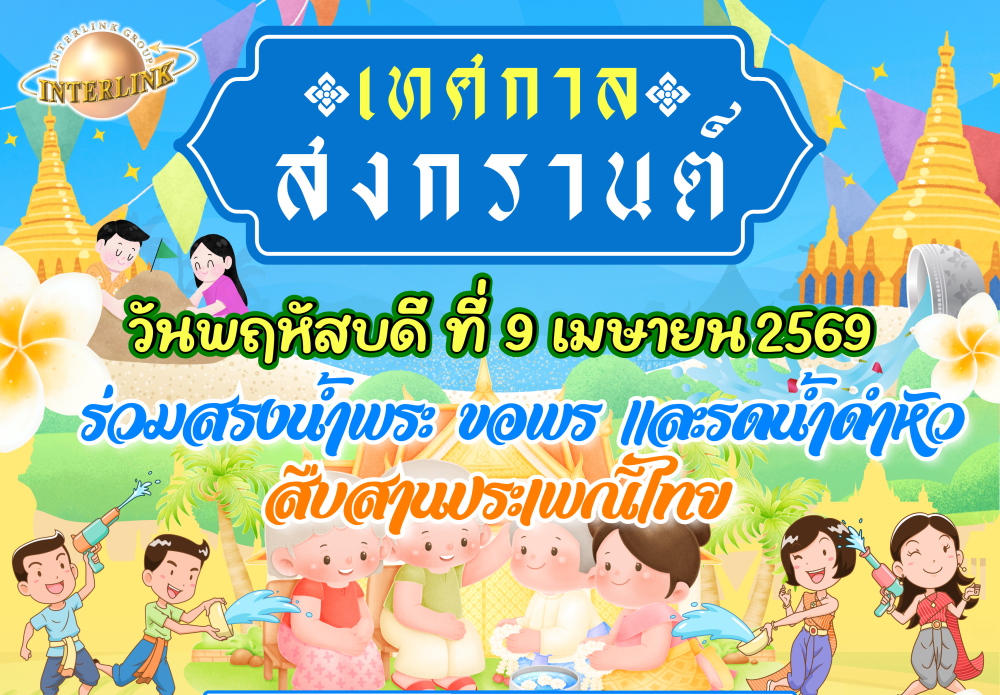 อบอุ่นหัวใจ รับประเพณีไทยวันสงกรานต์ วันนี้ (9 เมษายน 2569) กลุ่มบริษัท อินเตอร์ลิ้งค์ คอมมิวนิเคชั่น จำกัด (มหาชน) จัดกิจกรรมเนื่องในโอกาสเทศกาล วันสงกรานต์ ประจำปี 2569 เพื่อร่วมสืบสาน และอนุรักษ์ประเพณีอันทรงคุณค่าของไทย โดยภายในงานเต็มไปด้วยบรรยากาศแห่งความอบอุ่น ความเคารพ และความสามัคคีของผู้บริหาร พนักงานทุกระดับ ทั้งสำนักงานใหญ่ และทุกสาขาภูมิภาค ร่วมงานกันอย่างพร้อมเพียง